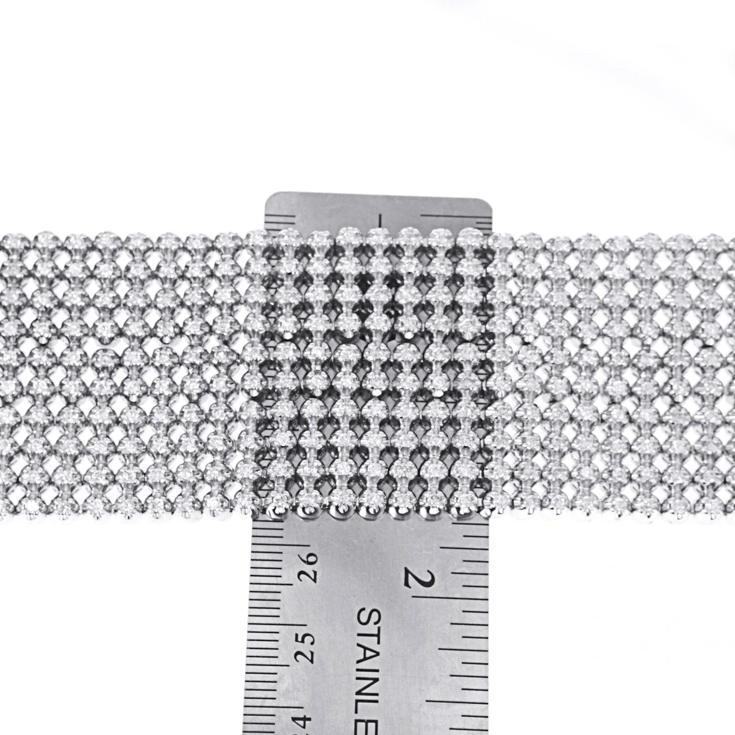 Diamond Bracelet. 14k White Gold set with 10 rows round cut diamonds in a pave setting. Total carat weight is 10.00CT. Bracelet is 9 inches long and weighs 140.9 grams.